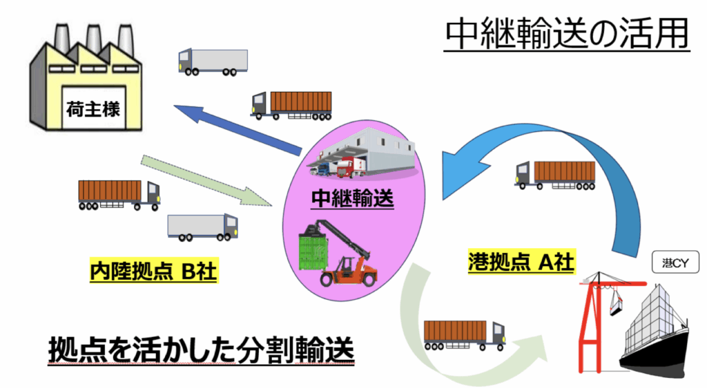 ・安定供給を目指した中継輸送などの物流スキームを改善提案